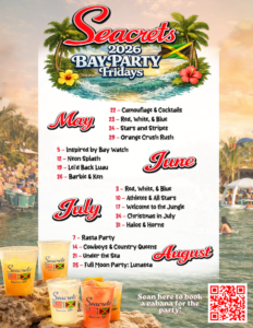 Grab your crew, dress for the theme, and get ready for extra fun on the water at Seacrets! 🍹🎉 See you on the bay!