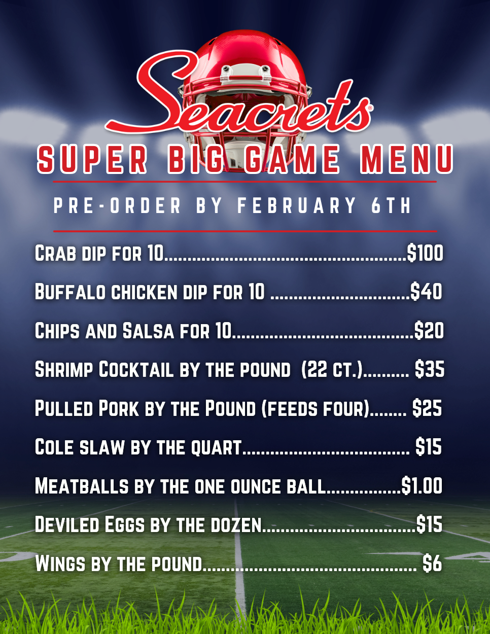 Seacrets Super Big Game Menu Pre-Order